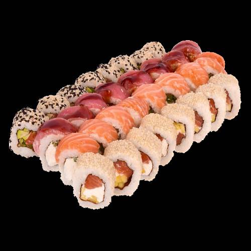 Сет Сакана 1085 г , 32 шт Філадельфія з лососем, філадельфія з тунцем, каліфорнія в кунжуті, самурай рол. 628 грн Сет Сакана quantity Add to cart