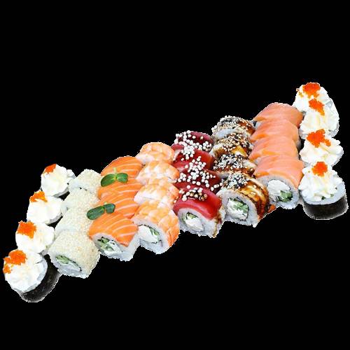 Філадельфія з лососем, філадельфія з тунцем, філадельфія з копченим лососем, філадельфія з вугрем, філадельфія з тигровою креветкою, філадельфія в кунжуті, рол з сиром філадельфія і тунцем.